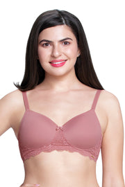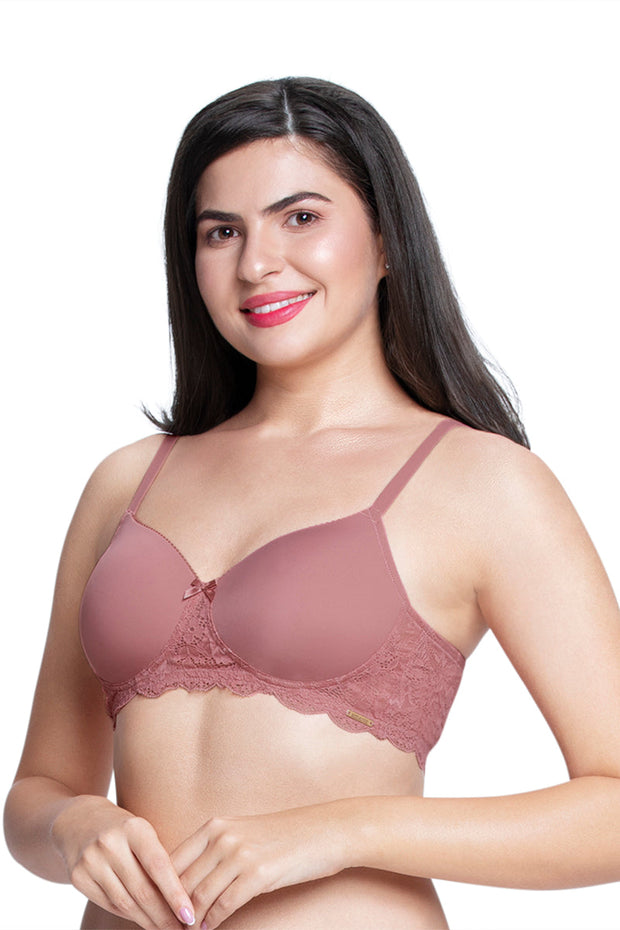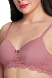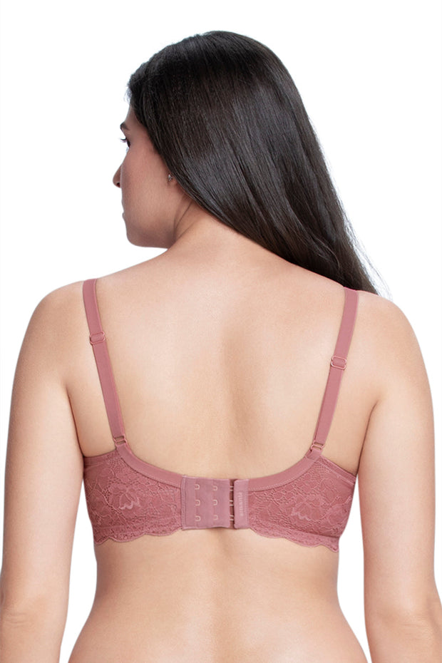 • Elegant Lace Non-Padded Non-Wired Support Bra - Pickled Beet & Stucco