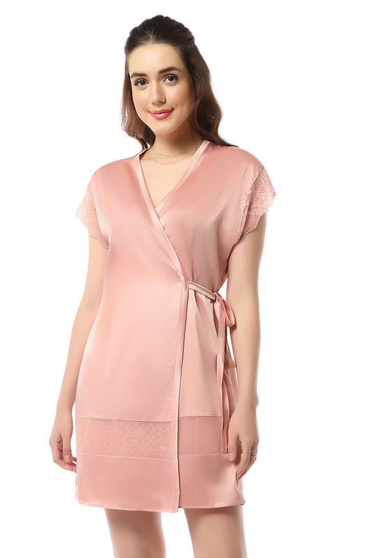 Eternal Bliss Satin Robe - Mellow Rose