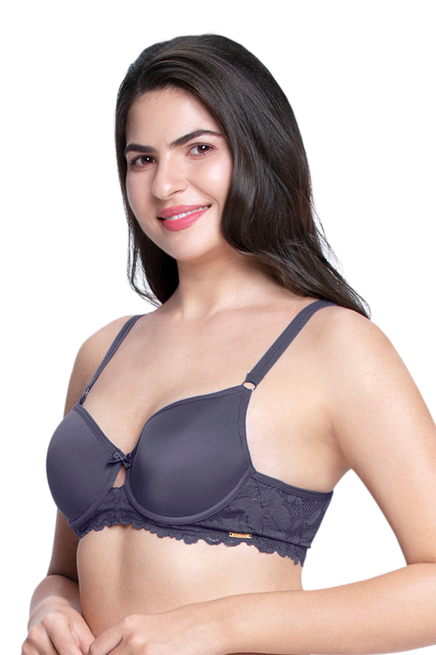 Satin Edge Padded Non-wired T-shirt Bra - Lilac Hint Pr