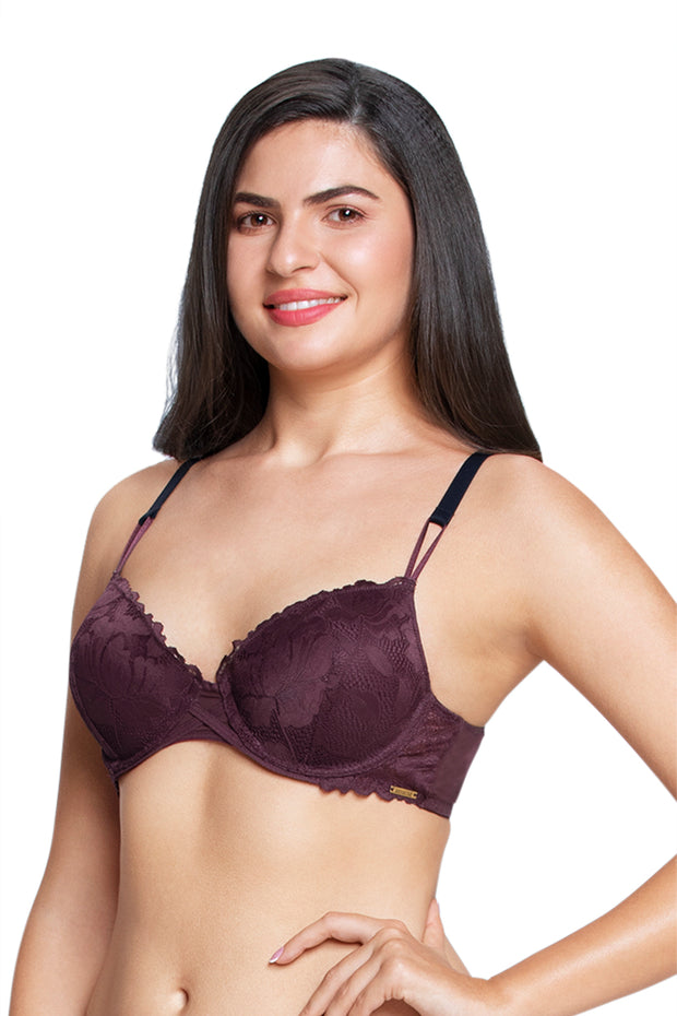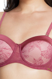 Floral Romance Padded Wired Lace Bra - Rumba Red-Impatiens Pink