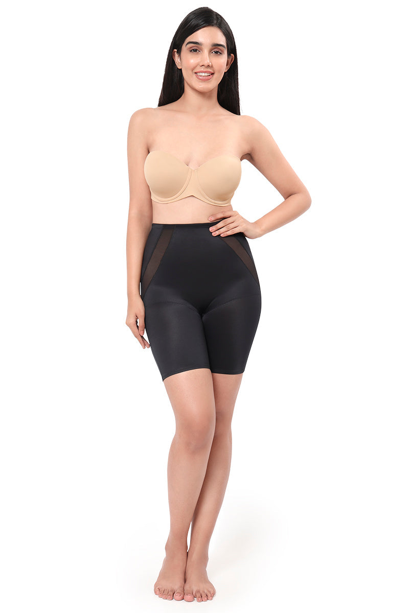 Get your daily dose of confidence with Ultimo’s thigh shaper. Crafted with sweat wick fabric, the rear mesh panel ensures maximum breathability for utmost comfort. Featuring contoured compression, this shaper smoothens your hips and thighs while flattening the tummy for a flattering silhouette.