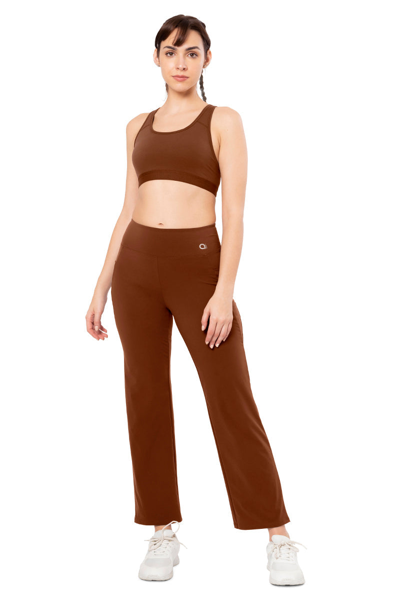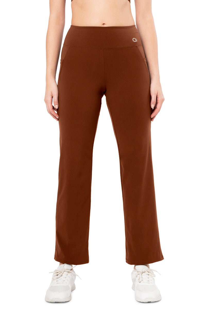 High-rise Flaunt Flared Travel Pants brings function and chic style to your active days. Perfect for the hustle bustle of the city life, it is crafted with 4-way stretch performance fabric and comes with moisture wicking finish. The flared fit at the bottom adds to your overall look.