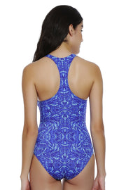 Racerback One Piece Swimwear - Blue Brushstrokes