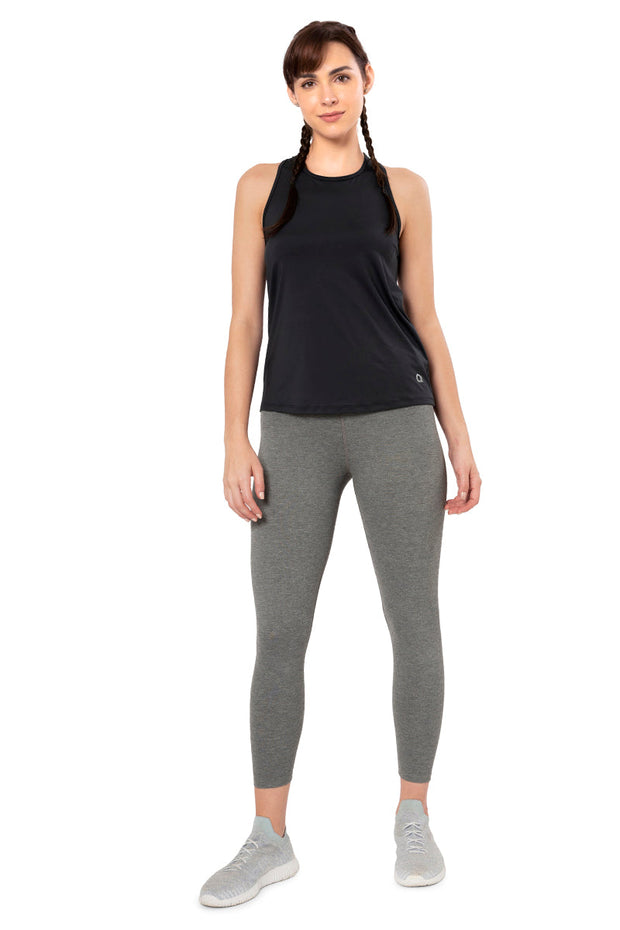 Flaunt Racerback Round Neck Tank Top - Jet Black
