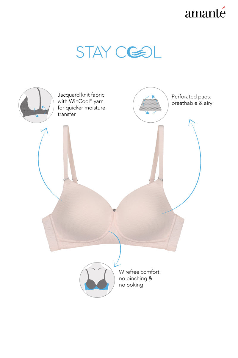 Say hello to your summer bestie! The Stay Cool Bra by amanté - especially designed for tropical summers. Its unique Stay Cool technology wicks away under-boob sweat and allows for maximum airflow. So stay cool and feel fresh all day long!