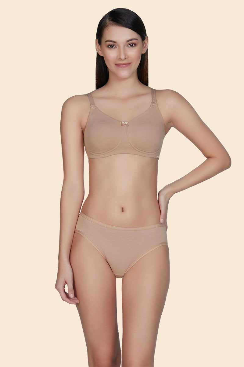 Synonymous to comfort, the signature cotton bra is an absolute must-have in your wardrobe. With moisture management finish, the bra wicks away perspiration quickly, making it a comfortable bra to be worn for long hours. The chafe free fabric is a bonus! Wear it under your fitted tees, kurtas or dresses for a contoured look.