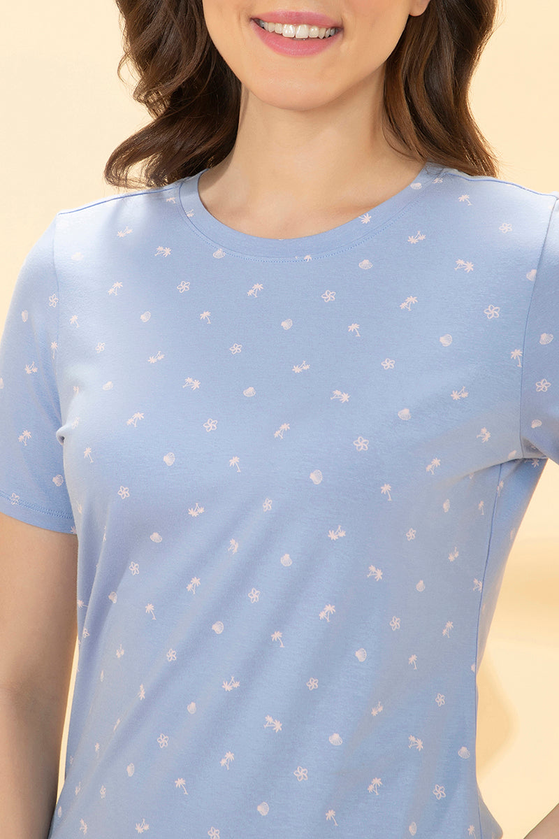 Whether you're lounging, sleeping or just out and about, this stylish Scoop Neck Sleep Tee from the Cozy Comfies range is going to be your favourite go-to pick. Crafted with SleepBliss Modal body fabric, it assures superior softness and comfort. You can up your lounge game by a notch and pair it with our shorts, capris or full length pyjama bottom from the range.