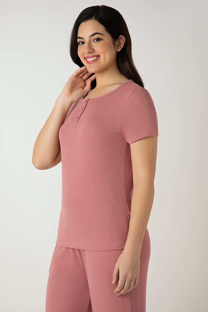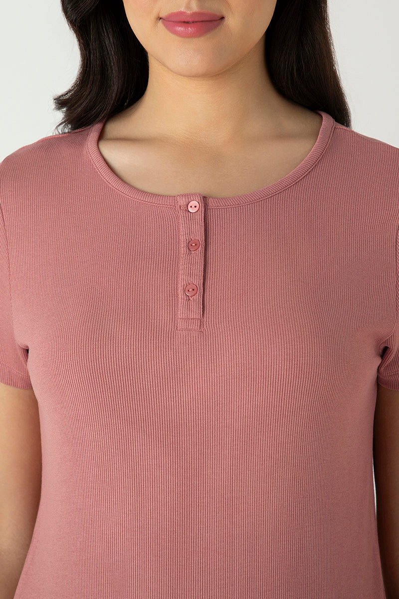 Fabric Composition: 95% Viscose 5% LycraWash Care: Machine wash cold. Gentle cycle. No chlorine bleach. Wash inside out. Tumble dry low. Do not iron on print. Wash dark colour separately.Generic Name: Serene Dream Henley Neck Tee