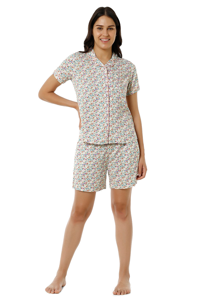 Fabric Composition: 100% Viscose Woven FabricWash Care: Machine wash cold. Tumble dry low. No chlorine bleach. Wash inside out. Do not iron on printGeneric Name: Sleep Shorts Set