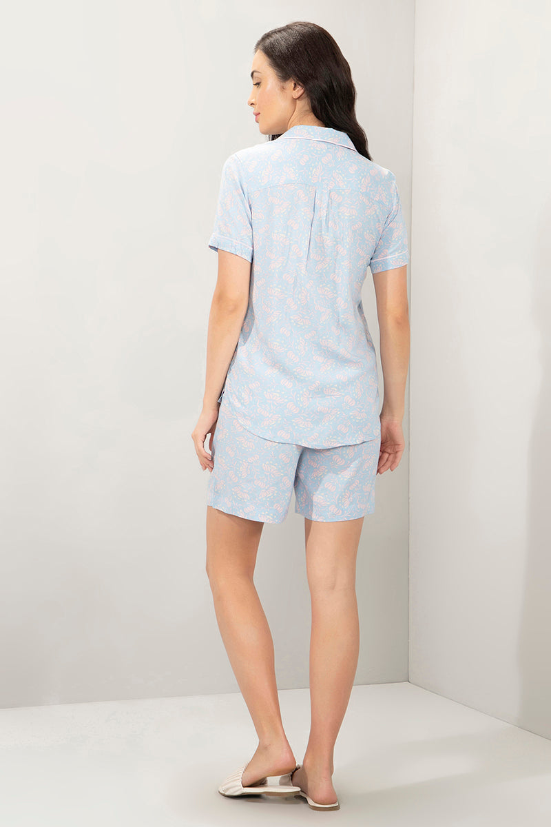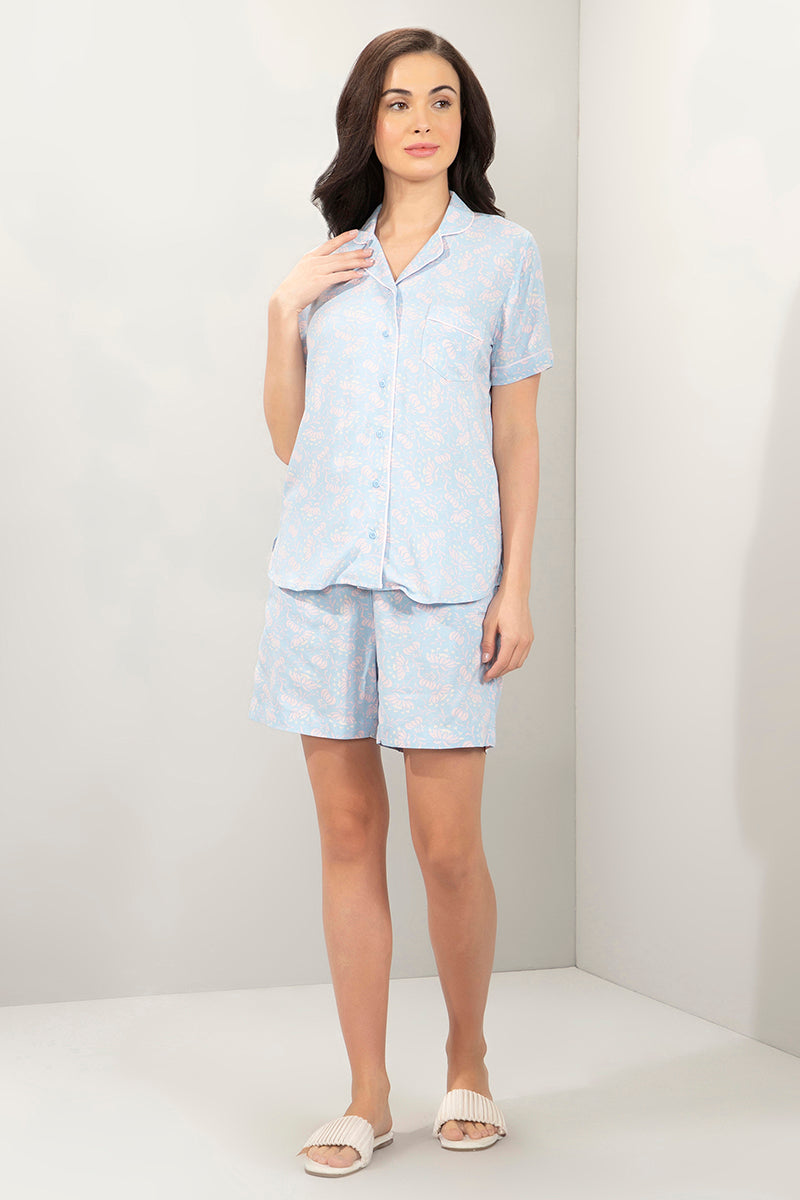 Give a cool update to your sleepwear wardrobe with this Sleep Shorts Set from our Cozy Comfies Collection. Thanks to the Sleeplux Viscose fabric, this two piece sleepwear set keeps you comfy and lends a fresh and light fit. This pajama set comes with half-sleeve button down shirt with a notch collar and a patch pocket for a classic flair along with a matching pair of shorts. Find a restful balance of comfort and style with our sleep shorts set.